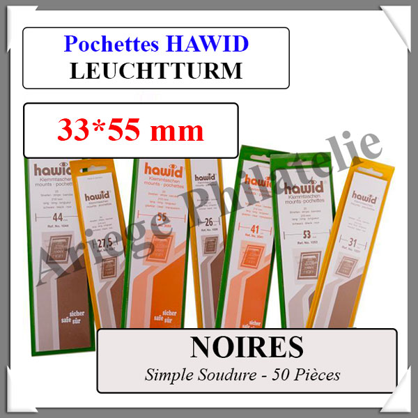 HAWID Pochettes Noires : 33x55 mm - Simple Soudure (302058)