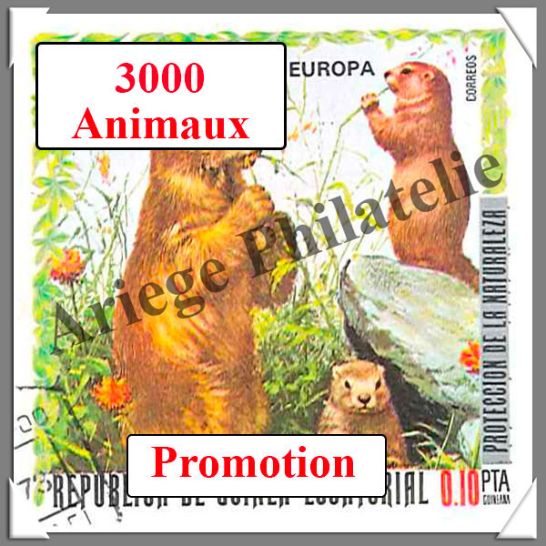 Animaux (Pochettes) - 3 000 Timbres Différents (Lot Promotionnel)