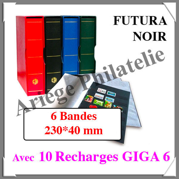 Pages FUTURA Plastique Noir - GIGA 6 - 6 Bandes : 40x230 mm - Paquet de 5 Pages (1796) Yvert et Tellier